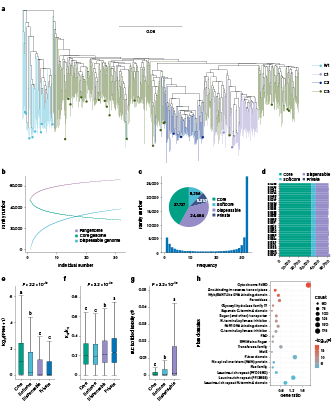 參考文獻(xiàn):Jinfeng Chen , Yang Liu, et al. Pangenome analysis reveals genomic variations associated with domestication traits in broomcorn millet[J]. Nature Genetics, 2023, 55(12):2243-2254.